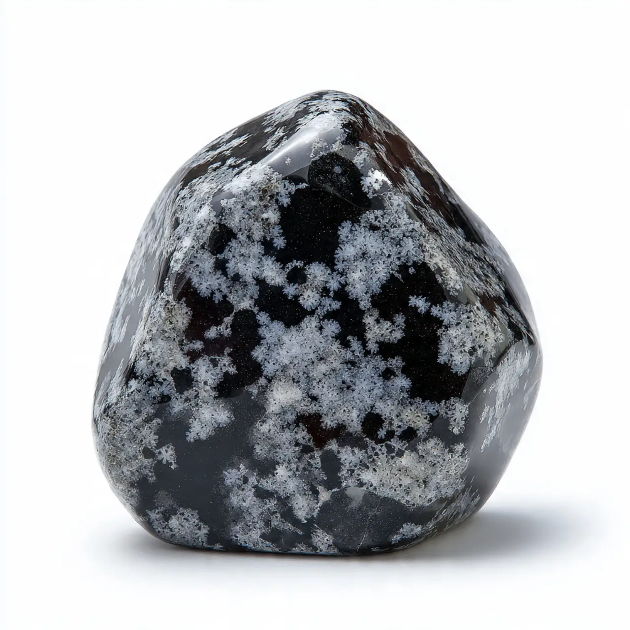 Snowflake Obsidian is a stone of purity and balance. This black volcanic glass with white snowflake patterns promotes peace of mind, spiritual purity, and enhanced meditation. It helps process loneliness productively, tempers anger, and brings about emotional healing. Its protective energy recognizes and releases wrong thinking patterns. Perfect for shadow work, meditation, and finding balance in solitude.